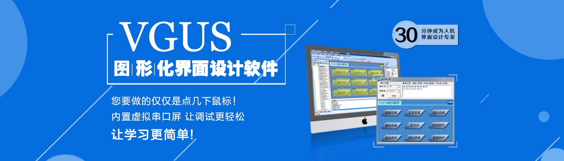 秉持讓人機(jī)交互設(shè)計(jì)更簡單的理念,成功研發(fā)了工業(yè)組態(tài)軟件VGUS(Viewtech Graphical User Software)。該軟件提供了一種圖形化的人機(jī)交互功能設(shè)計(jì)方法,打破了傳統(tǒng)的描點(diǎn)、畫線的界面設(shè)計(jì)模式,降低了儀器設(shè)備的人機(jī)交互系統(tǒng)設(shè)計(jì)難度,解決了人機(jī)交互相關(guān)工作的重復(fù)性設(shè)計(jì)問題,能夠讓設(shè)計(jì)人員把更多的精力集中于產(chǎn)品關(guān)鍵技術(shù)研發(fā)上,專心于專業(yè)產(chǎn)品的開發(fā),提高了儀器設(shè)備的開發(fā)效率。